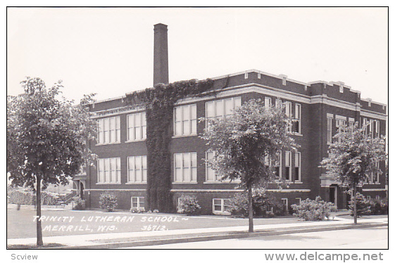 RP: MERRILL , Wisconsin , 30-40s ; TRinity Lutheran School :: Postcard, 3.5 by 5.5 , Real Photograph , EX