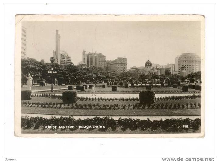 RP, Praca Paris, Rio De Janeiro, Brasil, PU-1941 :: Antique (Vintage) Original Postcard, Standard Size (3.5 by 5.5), Real Photo, VG+, Small Crease On Upper-Left Corner, CW, & WOB.