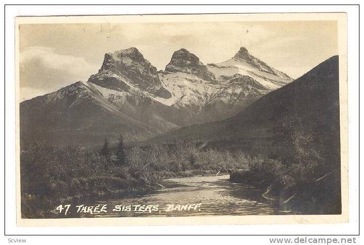 RP, Three Sisters, Banff, Alberta, Canada, 10-20s :: Postcard, 3.5" by 5.5", Real Photograph, EX