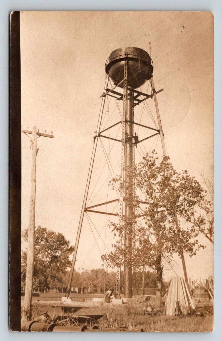 RPPC 1914 Water Tower Sterling Kansas Postcard
