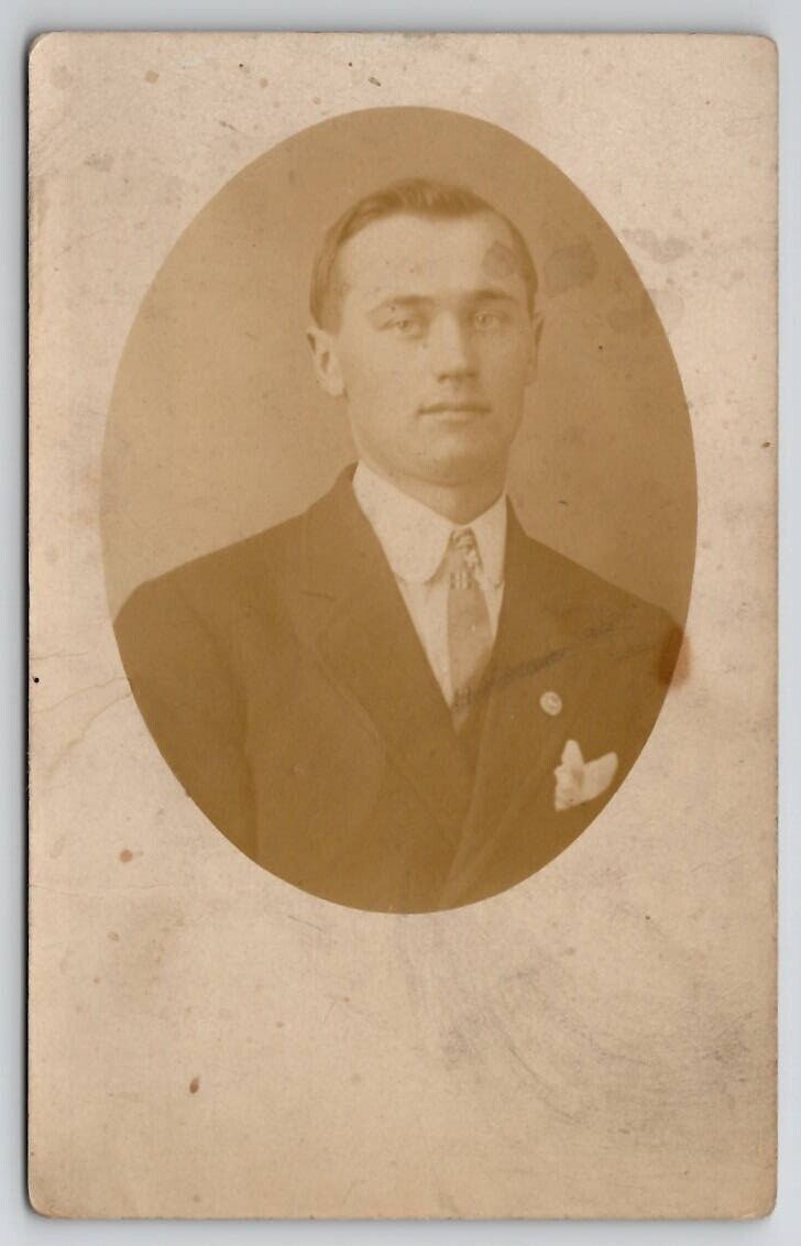 RPPC Attractive Young Man Oval Masked Portrait Postcard G30
