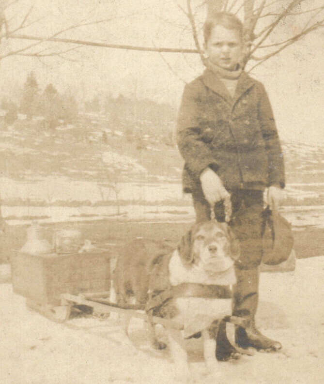 RPPC Beagle Dog Pulling Sled Real Photo Postcard