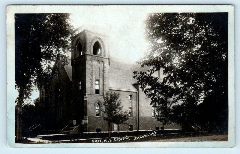RPPC BROOKINGS, SD South Dakota ~ FIRST M E CHURCH ~ c1910s Postcard