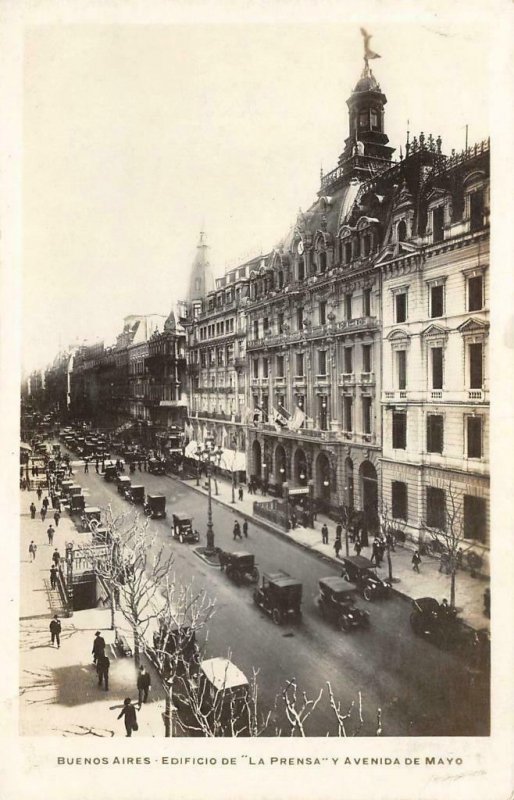 RPPC Buenos Aires Edificio de La Prensa y Avenida de Mayo c1920s Postcard