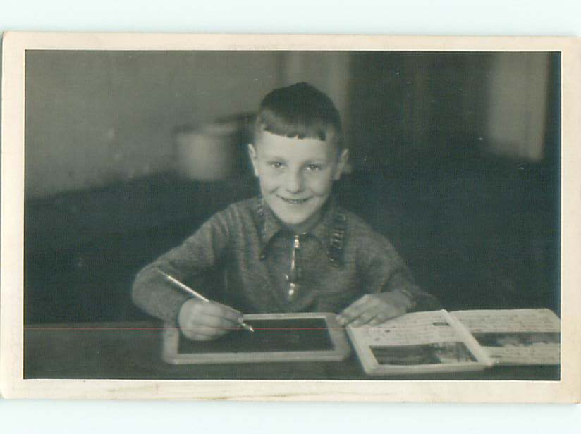 rppc c1910 BOY WRITING ON ANTIQUE SCHOOL SLATE AC8880