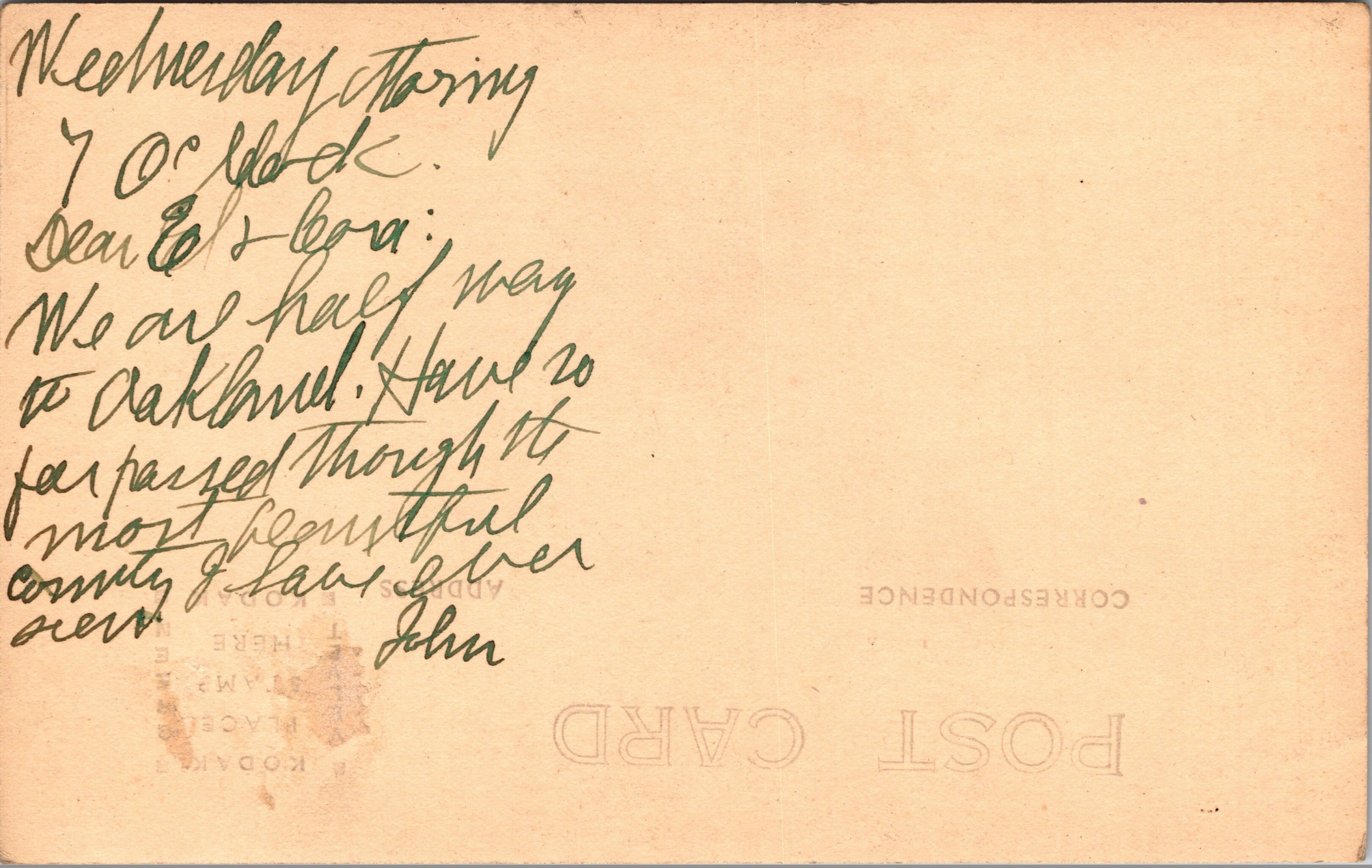Original real photo postcard of the Samarkand Persian Hotel in Santa Barbara California. The view highlights the formal gardens, walkways, arches, reflecting pond, and landscaped grounds. Unused card with light age ... Read More
