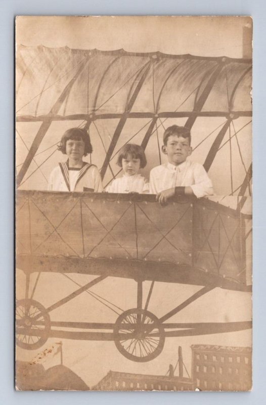 RPPC CHILDREN BALLOON DIRIGIBLE STUDIO REAL PHOTO POSTCARD (c. 1910)