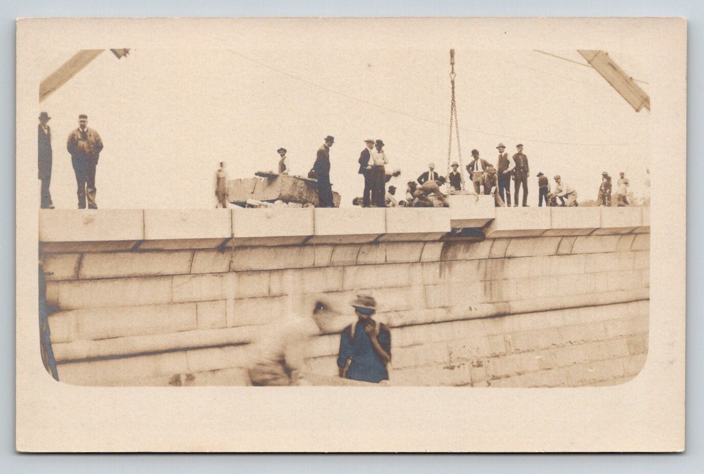 RPPC Construction Workers Granite Wall With Crane c1910 Postcard