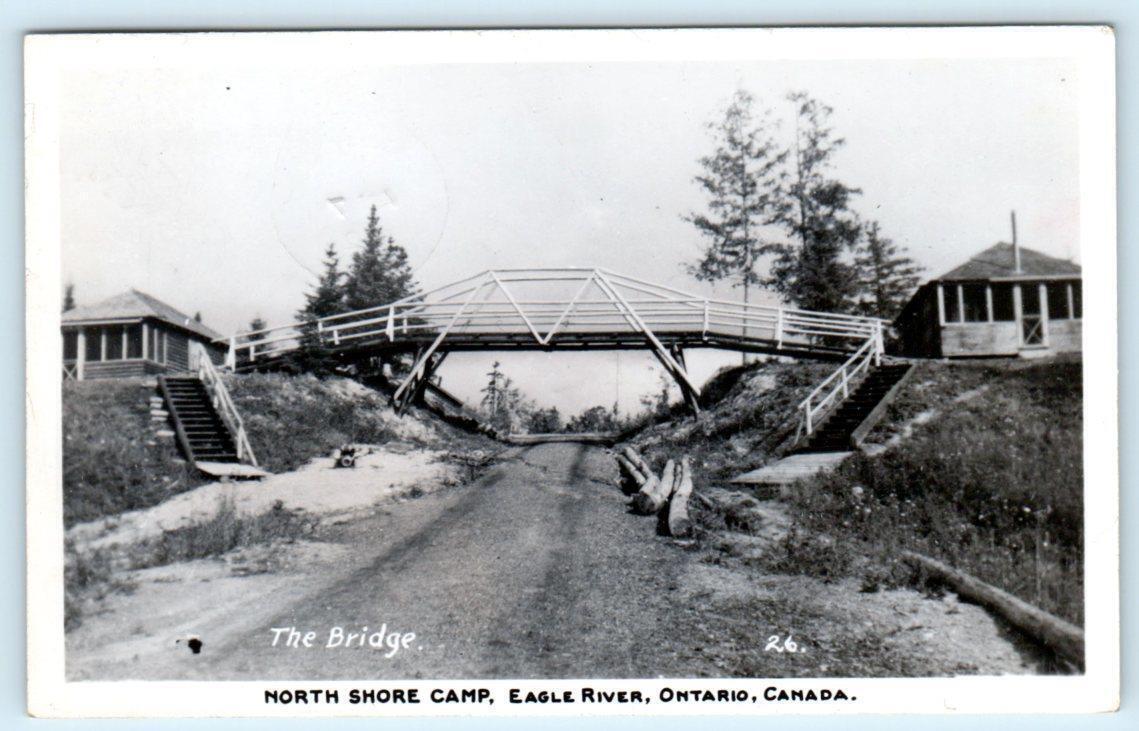 RPPC EAGLE RIVER, Ontario Canada ~ Bridge NORTH SHORE CAMP 1952 Postcard