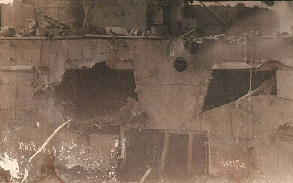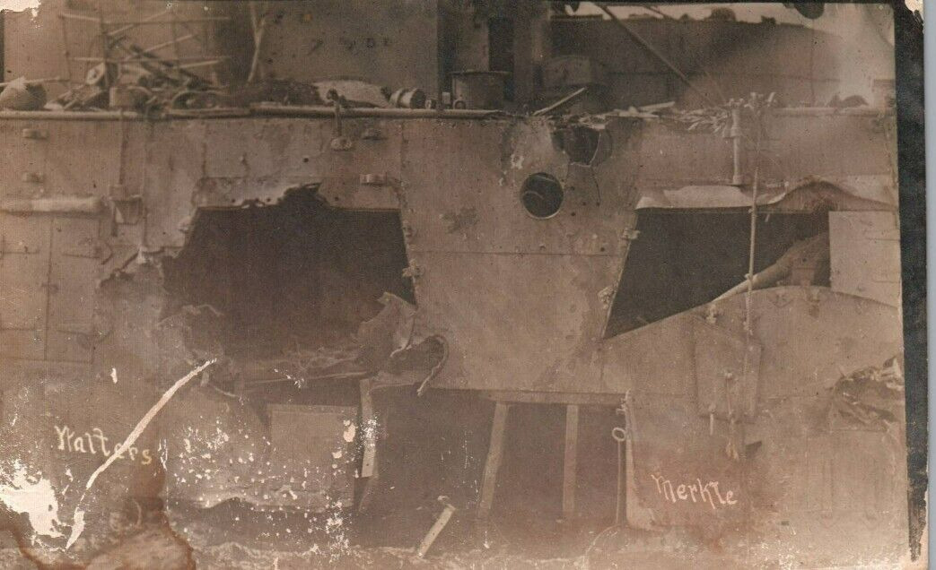 RPPC German Navy Destroyer Shelled Destroyed Ship WWI Postcard