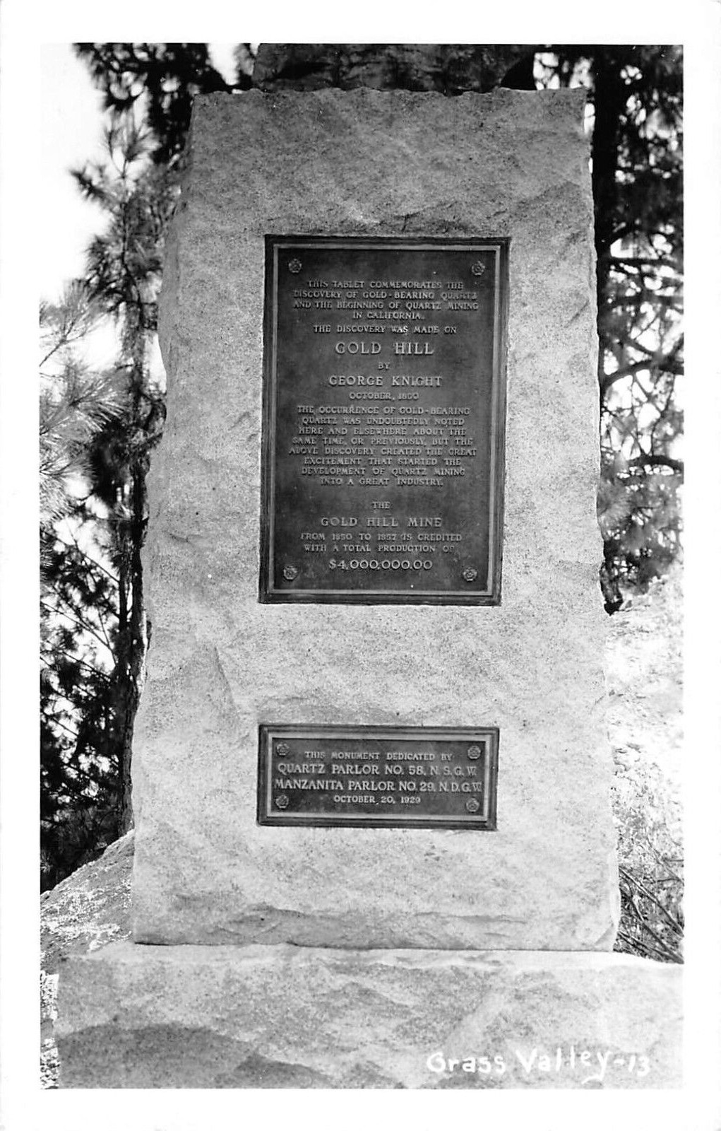 Vintage Postcard. RPPC Gold Hill Mine Monument Grass Valley, CA Mining ca 1950s Vintage Postcard RPPC Gold Hill Mine Monument Grass Valley, CA Mining ca 1950s Vintage Postcard Click images to enlarge Description Vintage Postcard. There is a flat rate of $1.00 to ship anywhere within the U. S. Multiple items will have a combined shipping rate of only $1.00. International - $1.50. Please check our other items in our Hip store: Visit My Hip Store. Please feel free to contact me with any questions you may have. All cards sold are vintage, no reproductions. Images sell!Get Supersized Images & Free Image HostingCreate your brand with Auctiva'sCustomizable Templates.Attention Sellers - Get TemplatesImage Hosting, Scheduling at Auctiva.com.Track Page Views WithAuctiva's FREE Counter