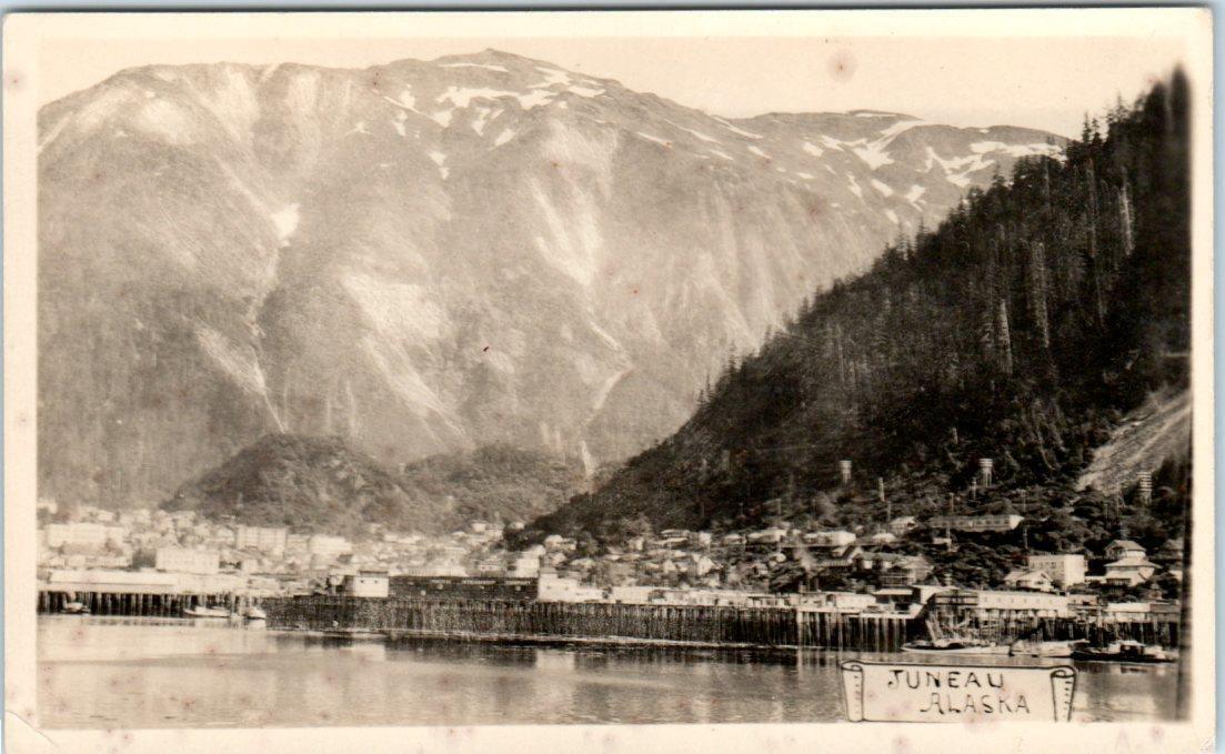 RPPC JUNEAU, Alaska AK PANORAMIC VIEW ca 1910s Postcard RPPC JUNEAU, Alaska AK PANORAMIC VIEW ca 1910s Postcard Click images to enlarge Description Occasionally postcard backs (usually real photo) will appear yellowed, which is a flaw from my scanner. If there is no staining mentioned in the condition statement, the card is not discolored. Also if odd colored lines appear this is also a scanner defect unless mentioned. Add me to your Favorite Sellers and feel free to email me with questions about item conditions as I try to describe them accurately. Please Visit My Hip Store, new items are added every week. Get Images thatMake Supersized Seem Small.Showcase your items with Auctiva'sListing Templates!THE simple solution for Hip sellers.Track Page Views WithAuctiva's FREE Counter