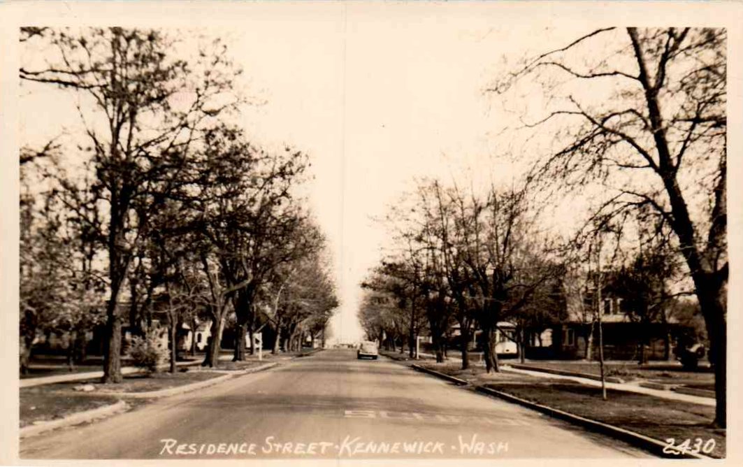 RPPC - Kennewick, Washington - A tree lined Residential Street - c1940