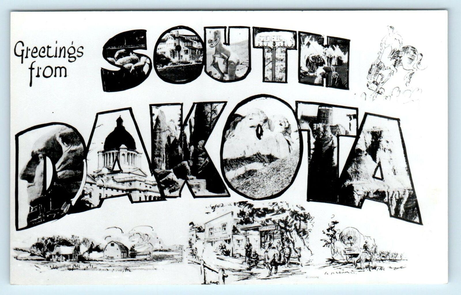 RPPC Large Letter GREETINGS from SOUTH DAKOTA, SD Multi View Postcard