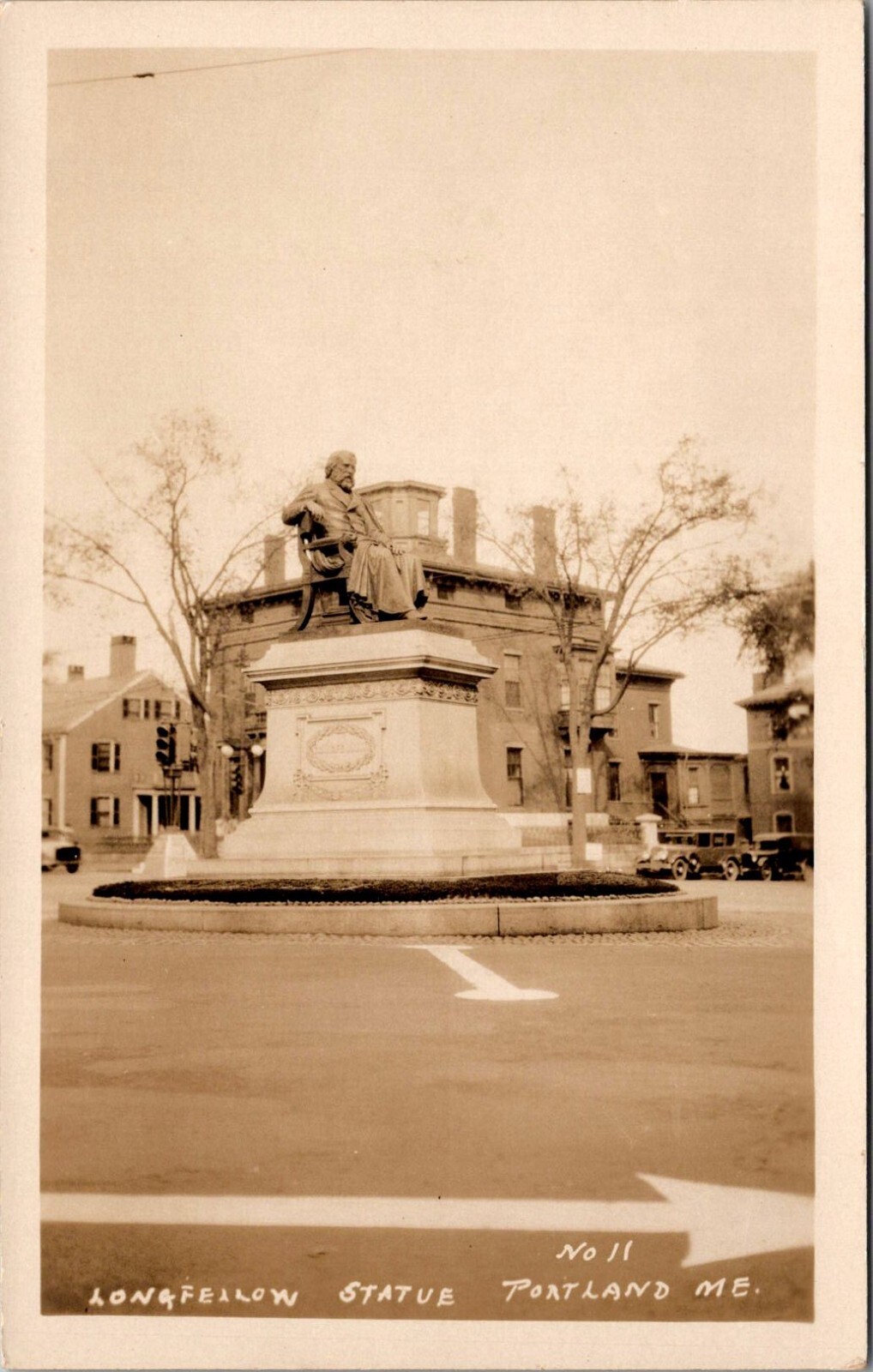 RPPC, Longfellow Statue, Portland ME Vintage Postcard N13