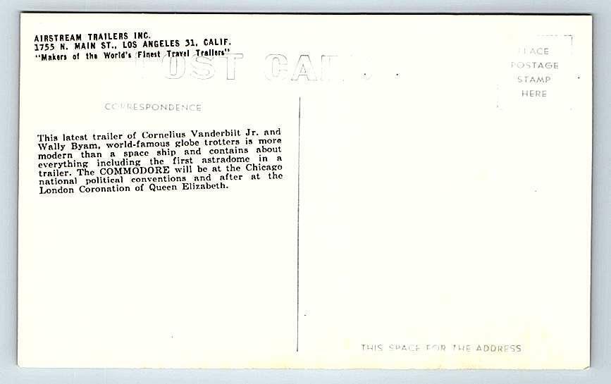 Please Add me to your Favorite Sellers and feel free to email me with questions about item conditions as I try to describe them accurately. Please Visit My Hip Store, new items are added every week. FREE SHIPPING within the U.S. - International Buyers pay $2.00 shipping. RPPC LOS ANGELES, CA~ Wally Byum's AIRSTREAM TRAILER Commodore c1930s Postcard RPPC LOS ANGELES, CA~ Wally Byum's AIRSTREAM TRAILER Commodore c1930s Postcard Click images to enlarge Description Please Add me to your Favorite Sellers and feel free to email me with questions about item conditions as I try to describe them accurately. Please Visit My Hip Store, new items are added every week. FREE SHIPPING within the U.S. - International Buyers pay $2.00 shipping. Get images thatmake Supersized seem small.Showcase your items with Auctiva'sListing Templates!Attention Sellers - Get TemplatesImage Hosting, Scheduling at Auctiva.com.Track Page Views WithAuctiva's Counter
