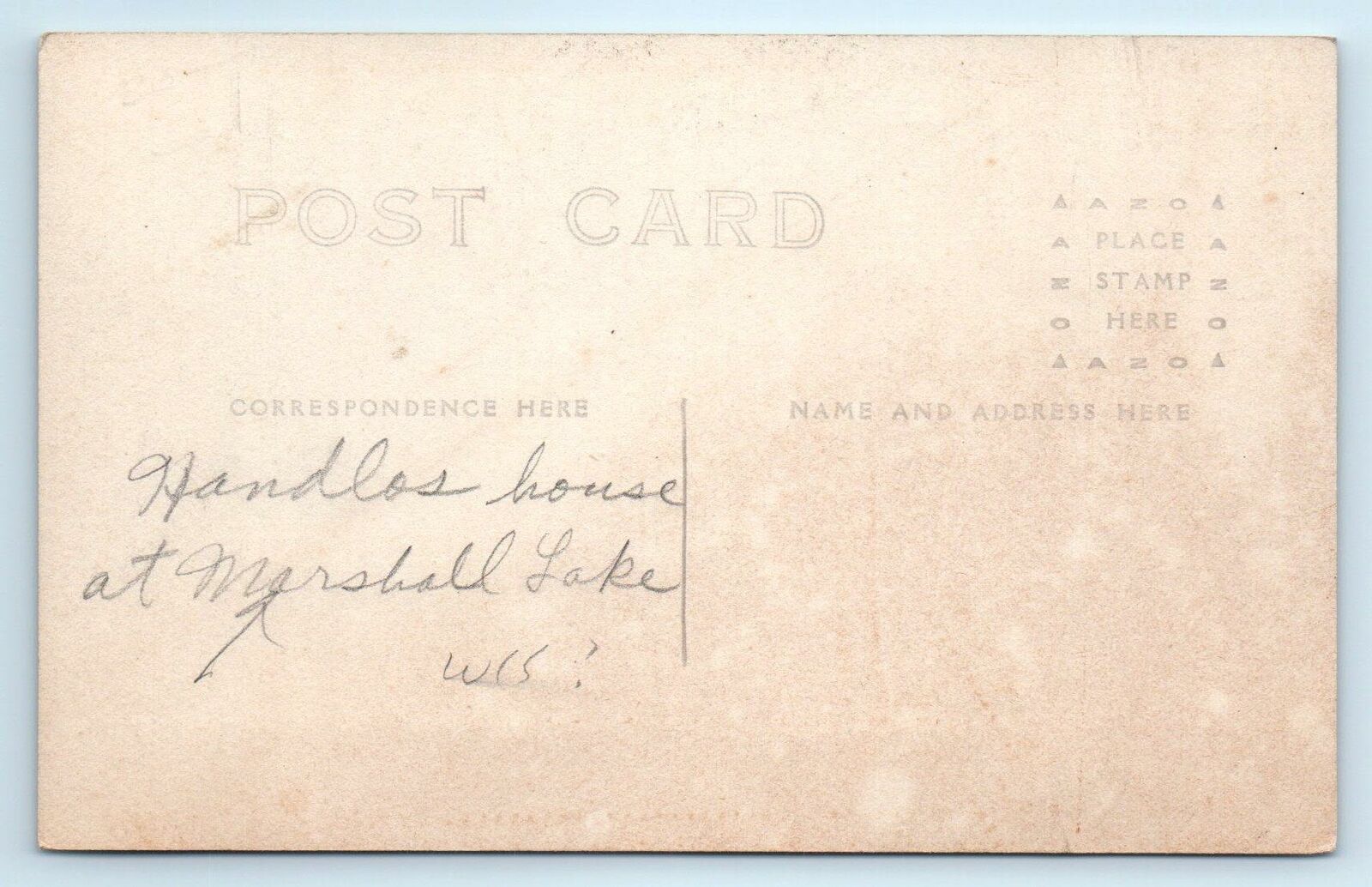 RPPC MARSHALL LAKE, WI? ~ Rustic LOG CABIN (Handlos House) c1910s Postcard