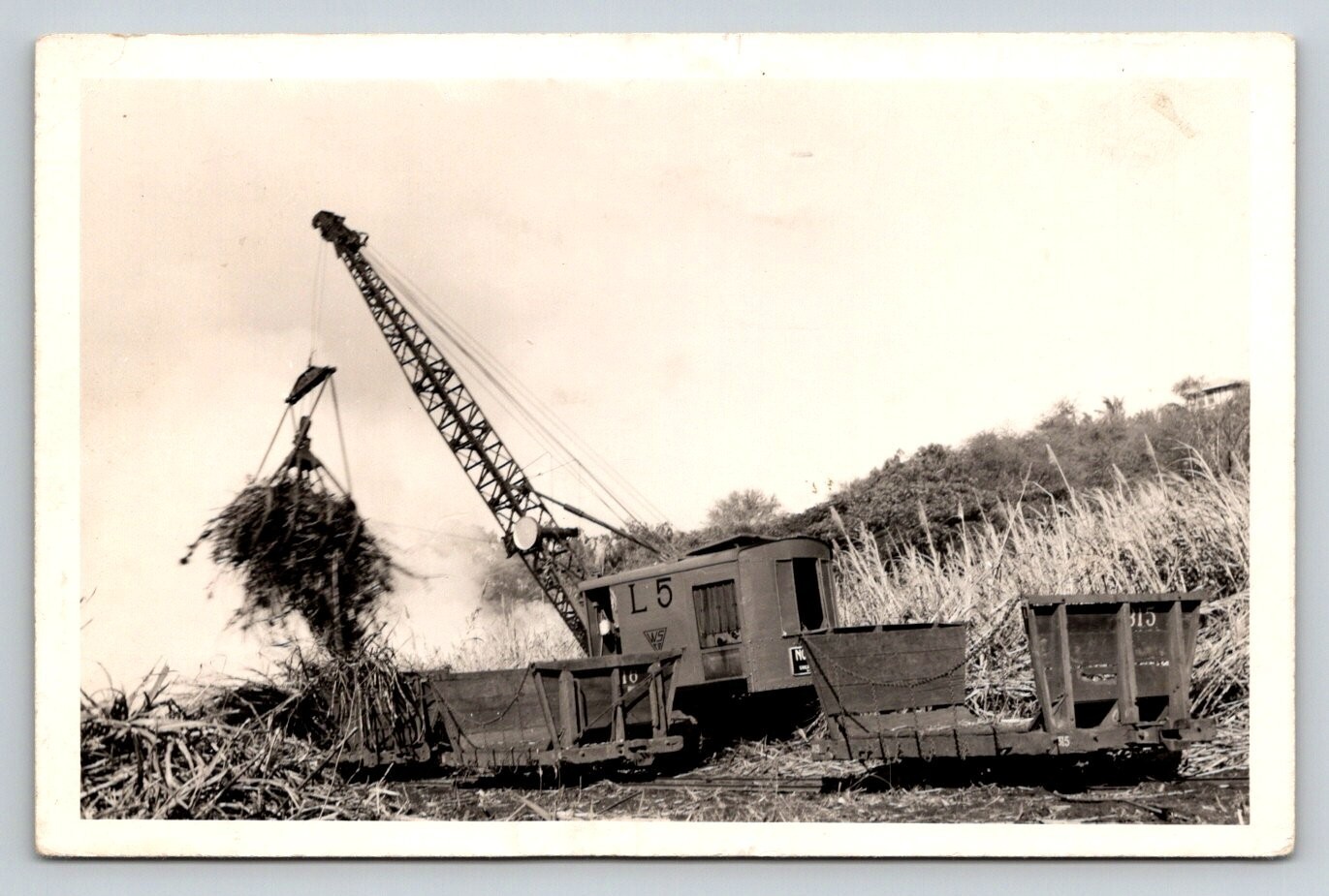 RPPC Mobile Railroad Crane Loading Suger Cane c1910 Postcard