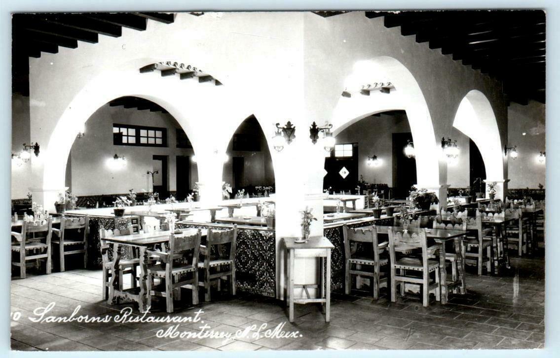 RPPC MONTERREY, Mexico ~ Interior SANBORNS RESTAURANT c1940s Roadside Postcard