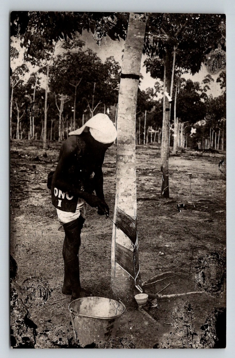 RPPC Native Worker Harvesting Rubber Tree c1920 Postcard