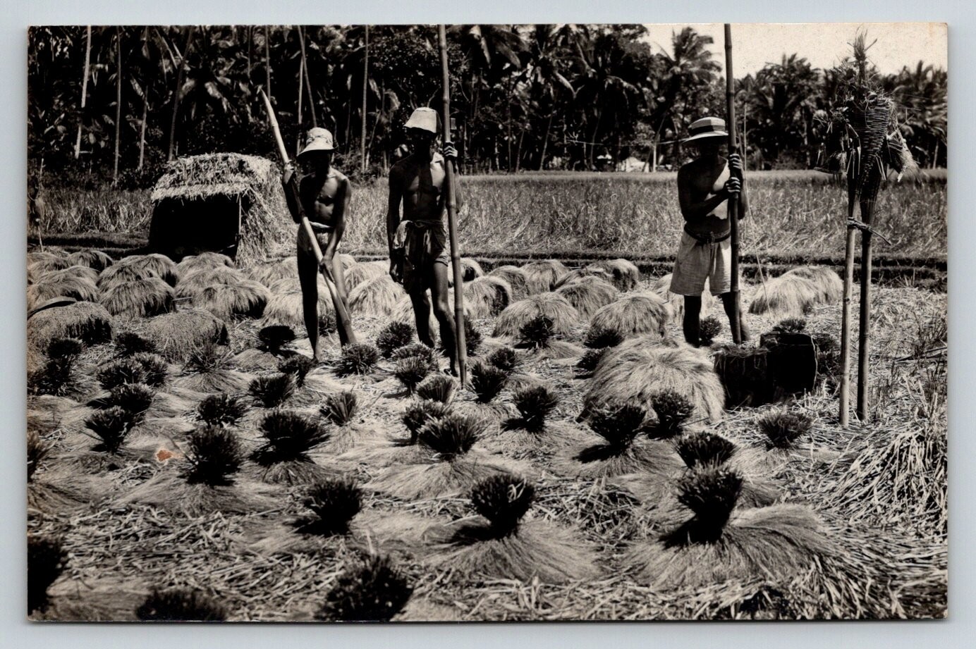 RPPC Native Workers Rice Plantation Harvesting c1920 Postcard