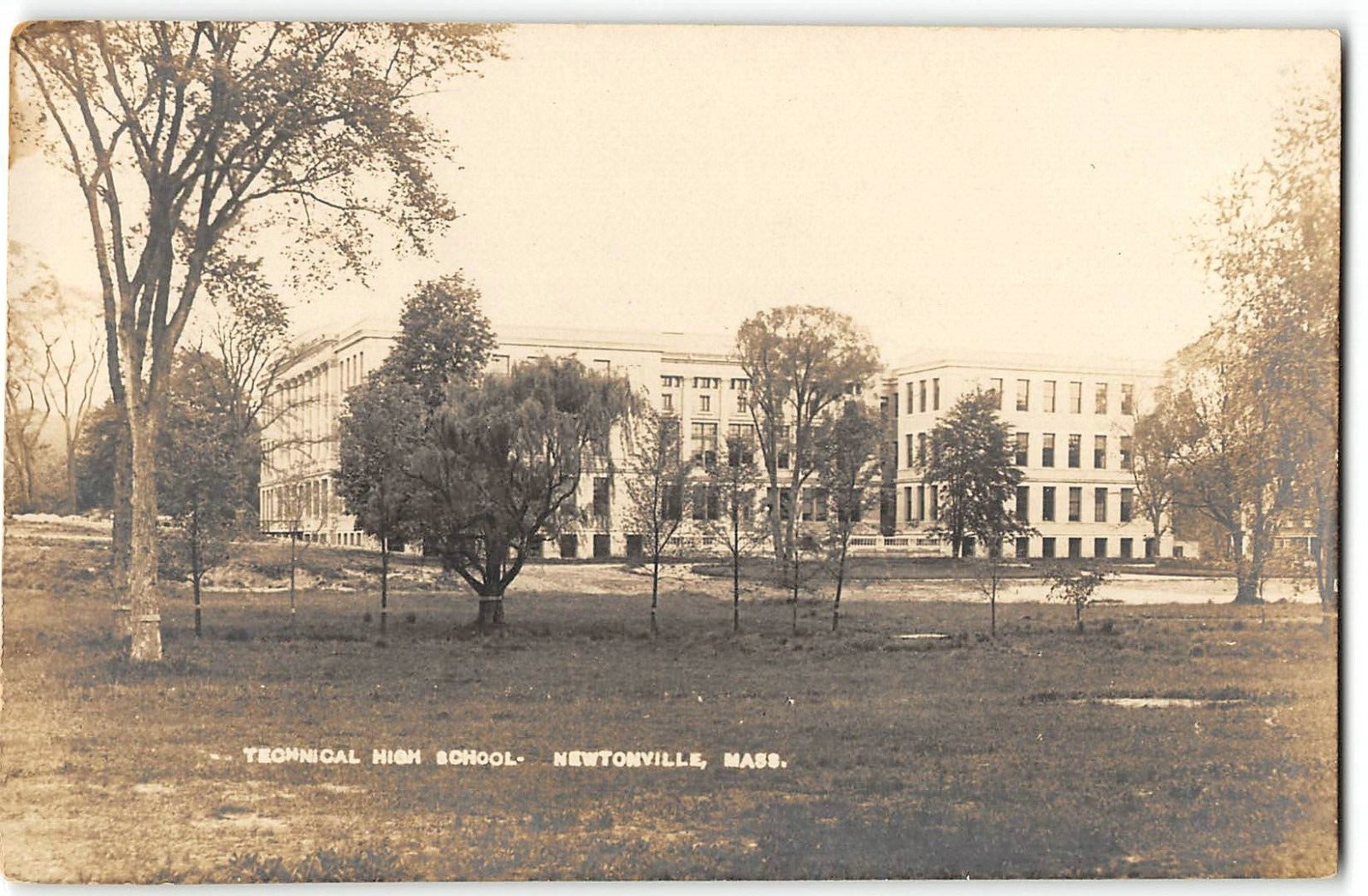 RPPC NEWTONVILLE, MA Technical High School Massachuetts Vintage Postcard c1910s