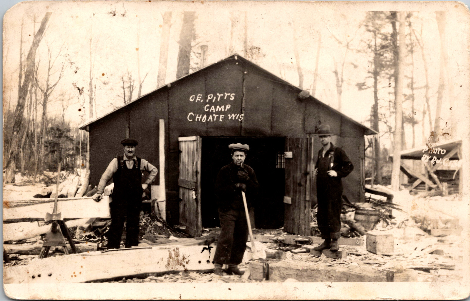 RPPC O E Pitts Camp Men Axe Choate WI Real Photo Postcard