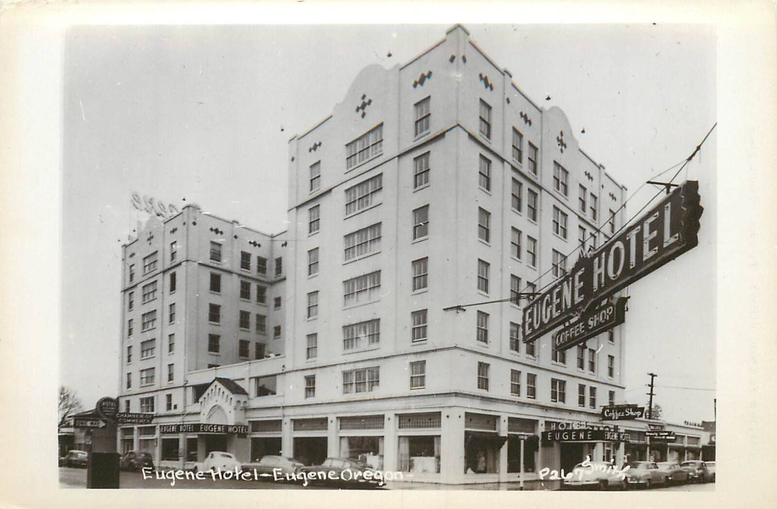 RPPC Postcard Eugene Hotel Eugene OR Coffee Shop Neon Signs Smith P267