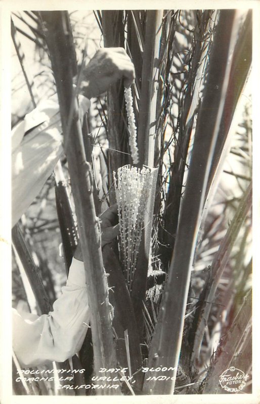 RPPC Postcard Frashers Hand Pollinating Date Bloom Coachella Valley Indio CA
