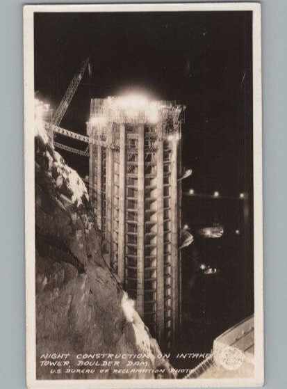 Condition: Pre-owned. Great vintage card. RPPC Postcard Night Construction Intake Tower Boulder Dam Frasher Foto c1950