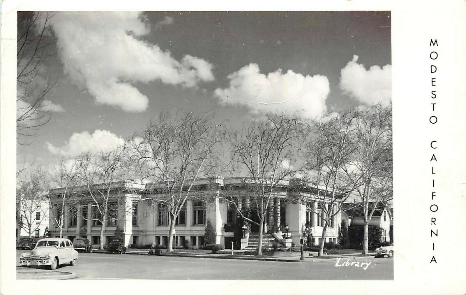 RPPC Postcard; Public Library, Modesto CA Stanislaus County posted