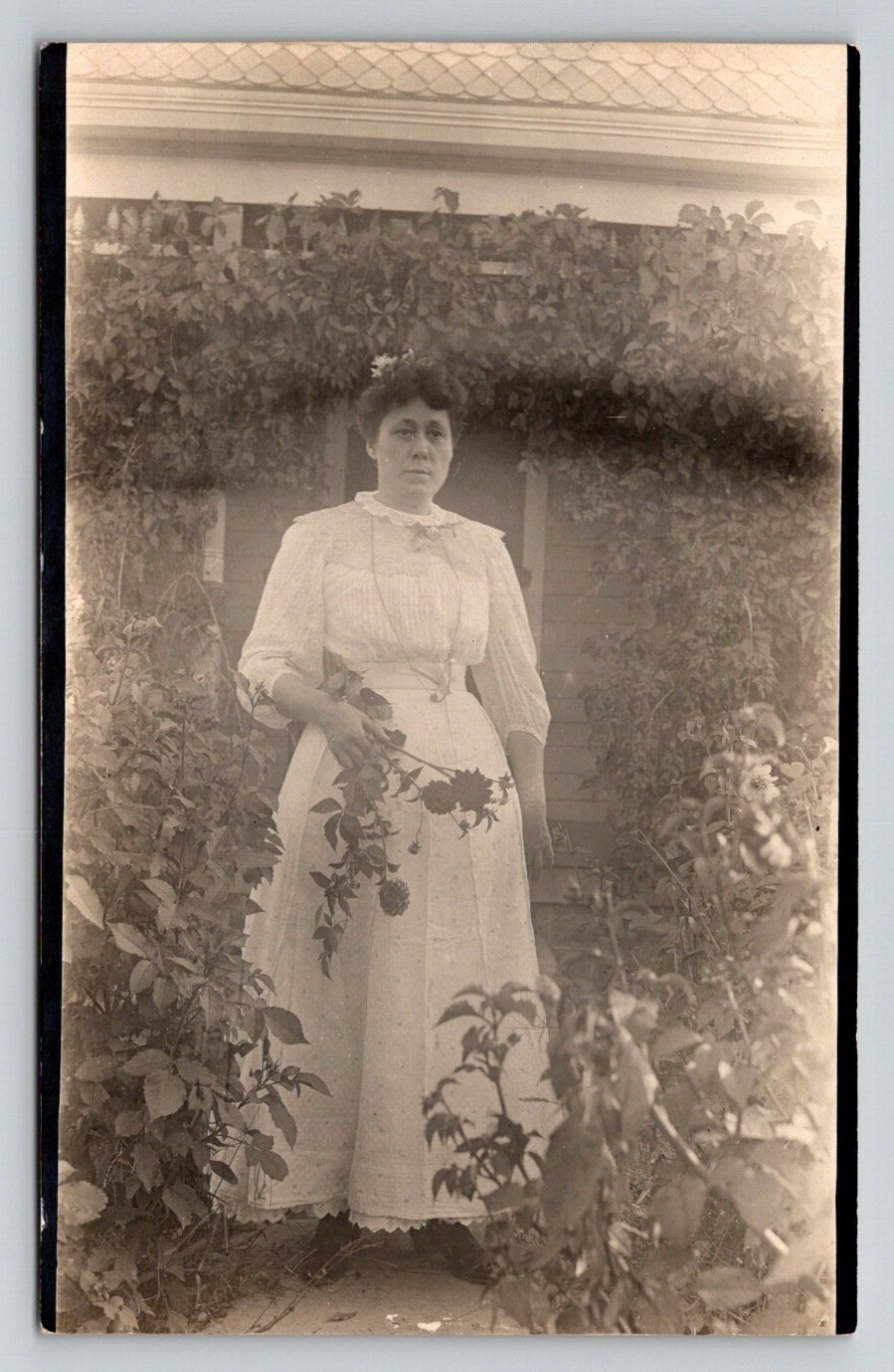 RPPC Pretty Lady Picking Flowers in Garden Postcard