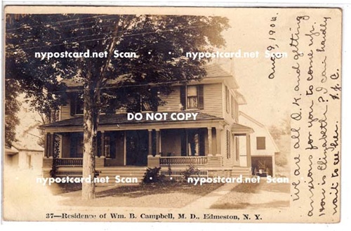 Rppc, Res Wm.B. Campbell Md., Edmeston Ny Description: Postal Usage: PM 1908 Condition: Very Good Type: RPPC Note: County: Otsego Co. > Edmeston