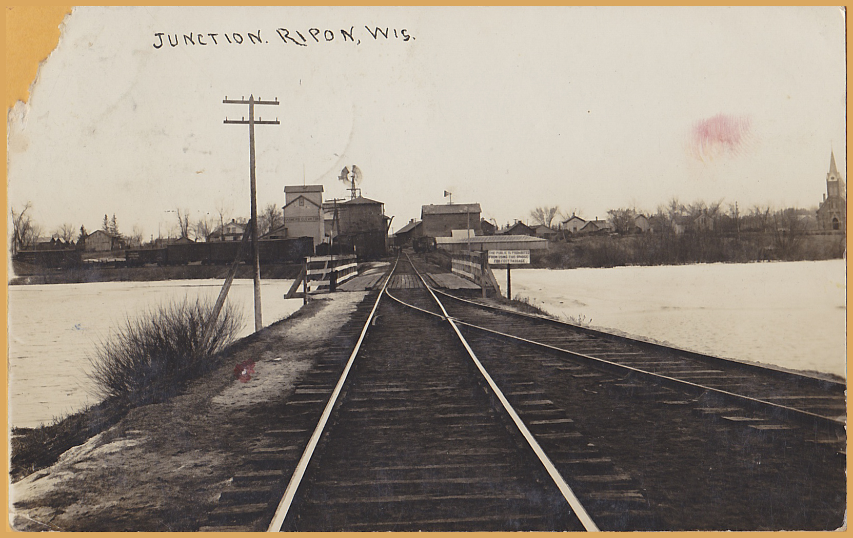 RPPC-Ripon, WIS., C&NW Railroad Junction along the Gothic Millpond - 1908