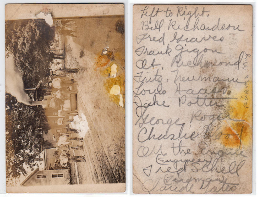 Postal Usage: UM / WO Condition: Poor Type: RPPC Note: Men in picture are named on back Click here for POSTCARD GRADING, ABBREVIATIONS, RETURN POLICY & SHIPPING RATES.