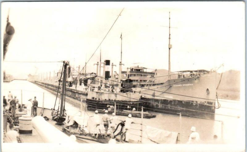 RPPC Ship "BENJAMIN BREWSTER" at Pedro Miguel Locks PANAMA c1920s Postcard