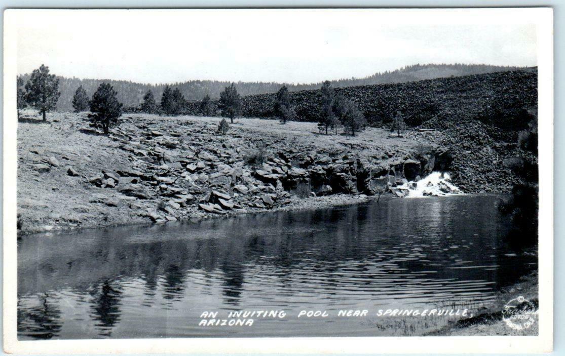RPPC SPRINGERVILLE, Arizona AZ "Inviting Pool" c1940s Frasher Postcard
