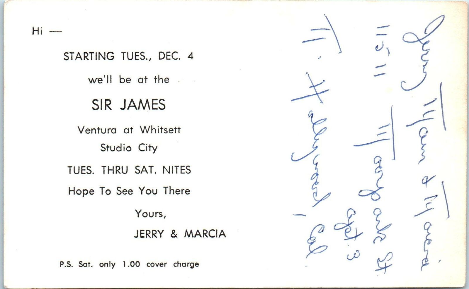 RPPC STUDIO CITY, CA Comedy Act ~ JERRY MANN & MARCIA~ c1960s Postcard