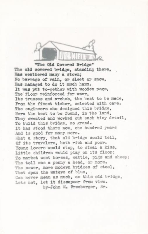 The Old Covered Bridge - Poem by John Freeburger. RPPC - Real Photo Post Card - This Kodak Stamp Box known 1950 to present. (Photo of a typed page). Excellent condition.