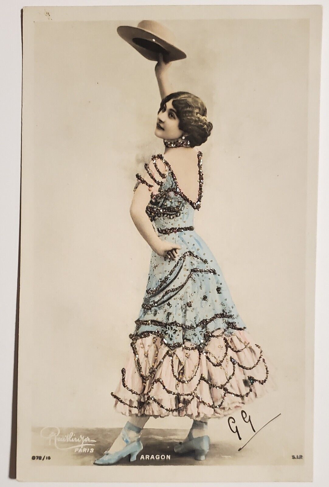 RPPC Theatre Actress Aragon Glitter Applique Reutlinger Photo Postcard B37