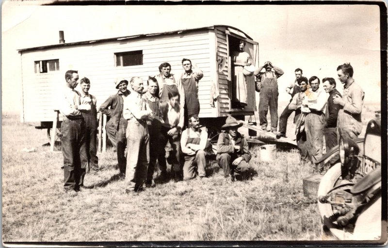 RPPC Threshing Crew Cook Shack Chuck Wagon MT Real Photo Postcard