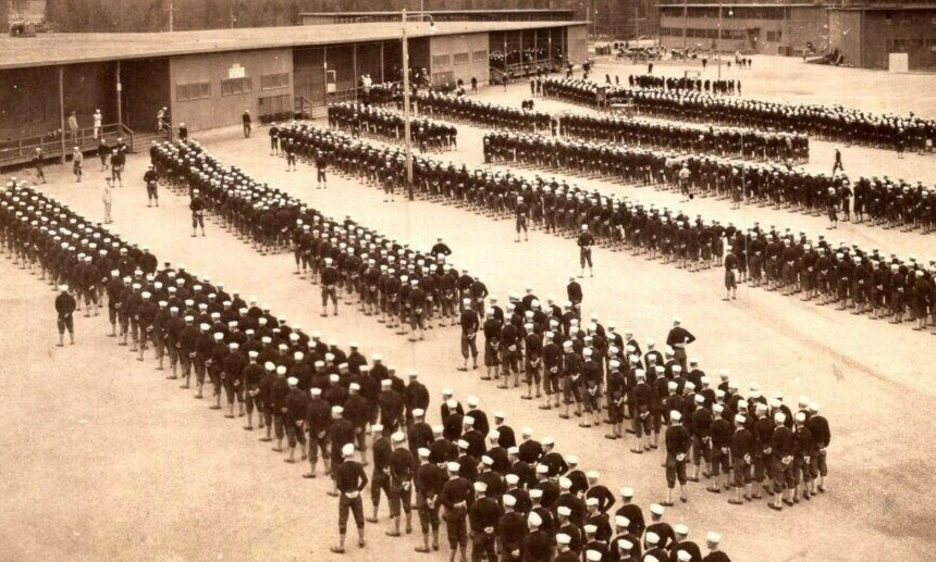 RPPC US Navy Boot Camp Chow Line Real Photo Postcard c1941