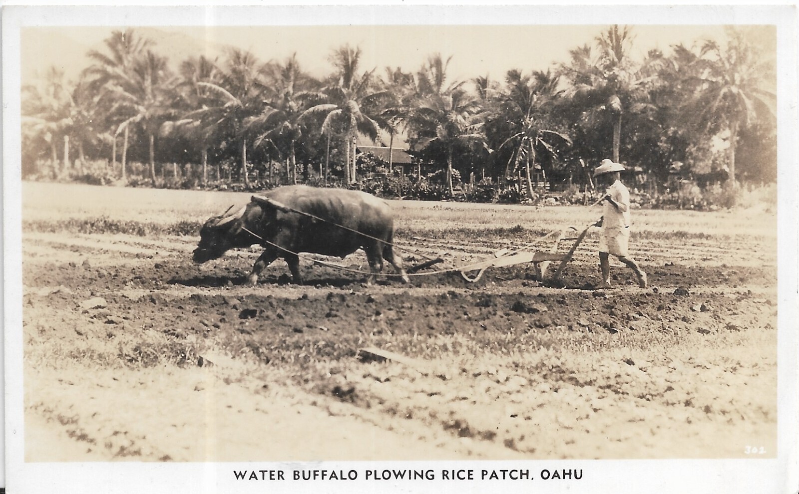 RPPC: Water Buffalo Plowing Rice Patch, Oahu, Hawaii, mint (PC1830)