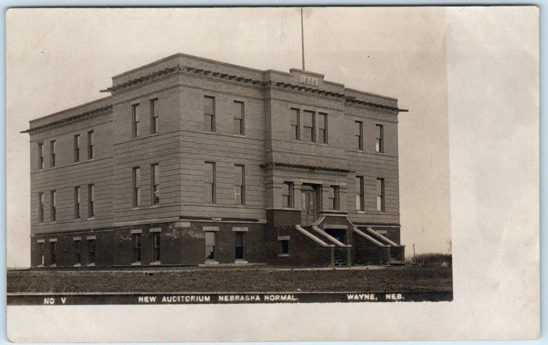RPPC WAYNE, NE Nebraska Normal NEW AUDITORIUM ca 1910s Postcard