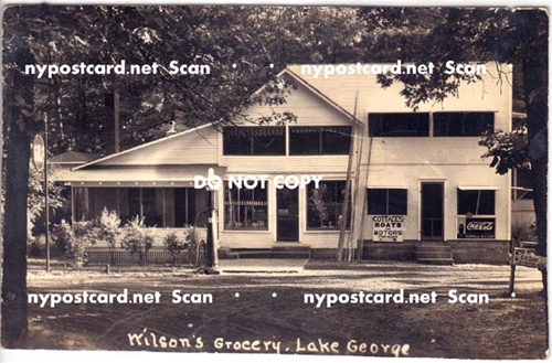 Rppc, Wilson's Grocery, George Lake Ny Description: Postal Usage: Unmailed Condition: trimmed Type: RPPC Note: Black paper on back from album County: Warren Co. > Lake George