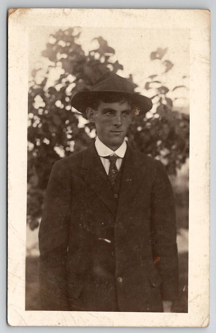 RPPC Young Man Hat Suit Real Photo Postcard U28
