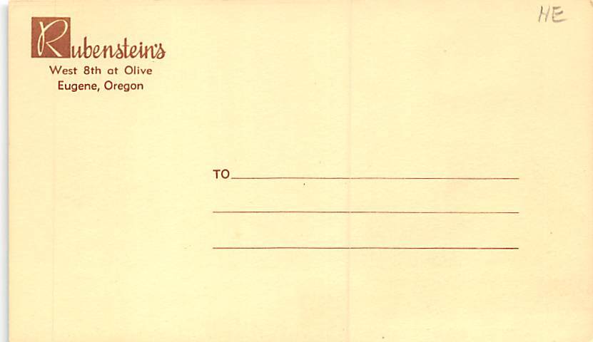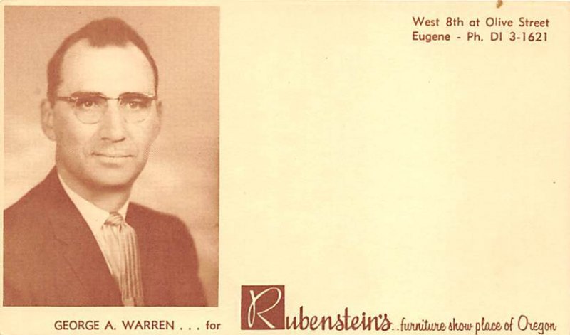 Ruberstein's George A. Warren - Eugene, Oregon OR Postcard - Unused