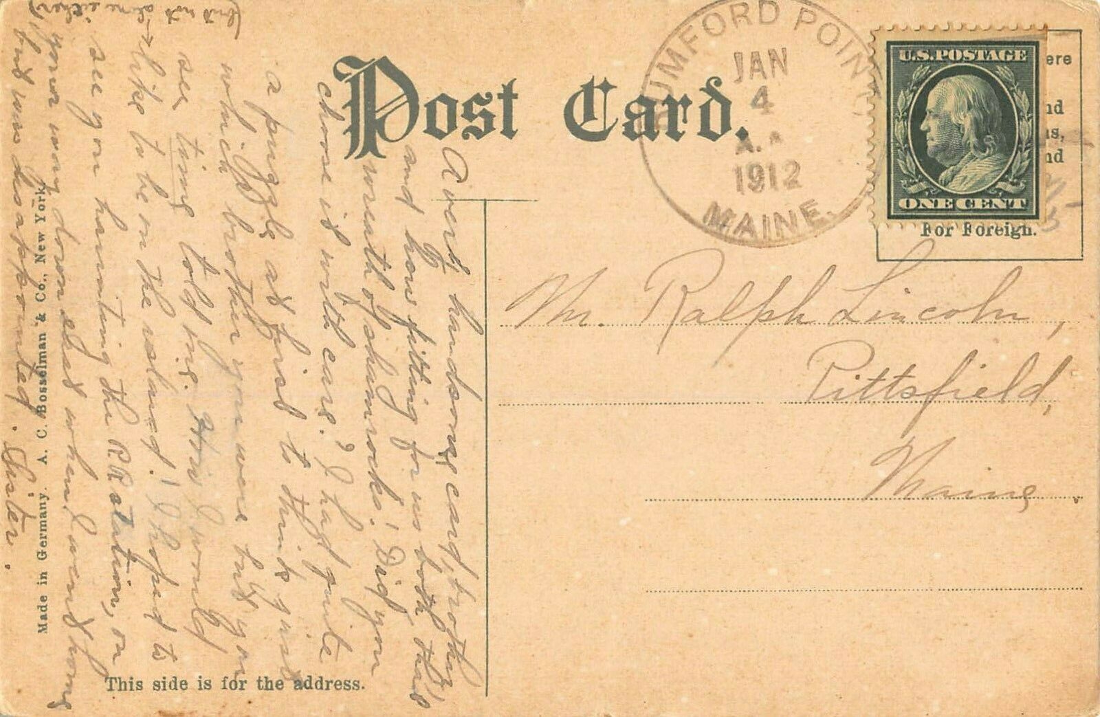 RUMFORD FALLS MAINE~BOARDWALK SNOW WINTER SUNSET-LOWER FRANKLIN ST~1912 POSTCARD