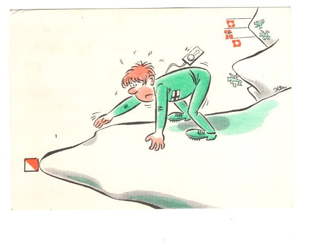 Runner Reaching for Orienteering Marker, Flag of Sweden,
