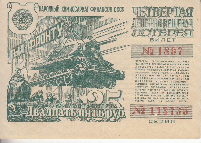 RUSSIA -1944 LOTTERY TICKET TANKS